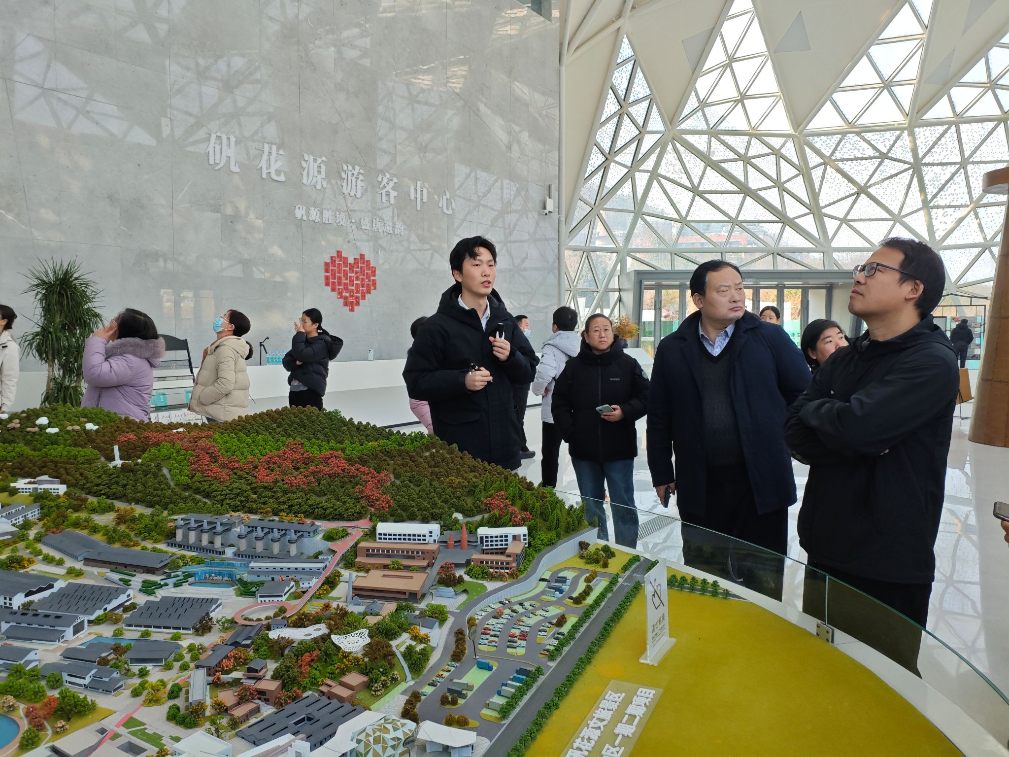 活动中,学院一行首先来到矾山镇的矾矿生态修复项目现场,深入了解这个有着近1400年历史的“千年矾都”,如何从“工业锈带”蝶变为“生态秀带”。大家实地考察了废弃矾矿山治理、工业遗迹保护与文旅融合的实践成果,走出生态保护与乡村振兴融合的发展新路,深刻体会了“绿水青山就是金山银山”的发展理念,其实干精神为大家上了生动一课。