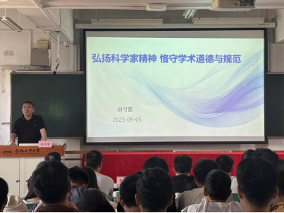 田可雷教授以“学术诚信与成长规划”为主题开展专题报告。他结合自身学术经历,语重心长地叮嘱新生:一要快速调整学习与研究状态,适应研究生阶段的培养节奏;二要重视基础课程学习,为后续科研工作筑牢根基;三要主动培养创新思维,敢于在学术领域探索突破,努力成为“守正创新、求真务实”的数学研究者。田教授的分享既为新生明确了成长方向,也传递了严谨治学的学术精神。